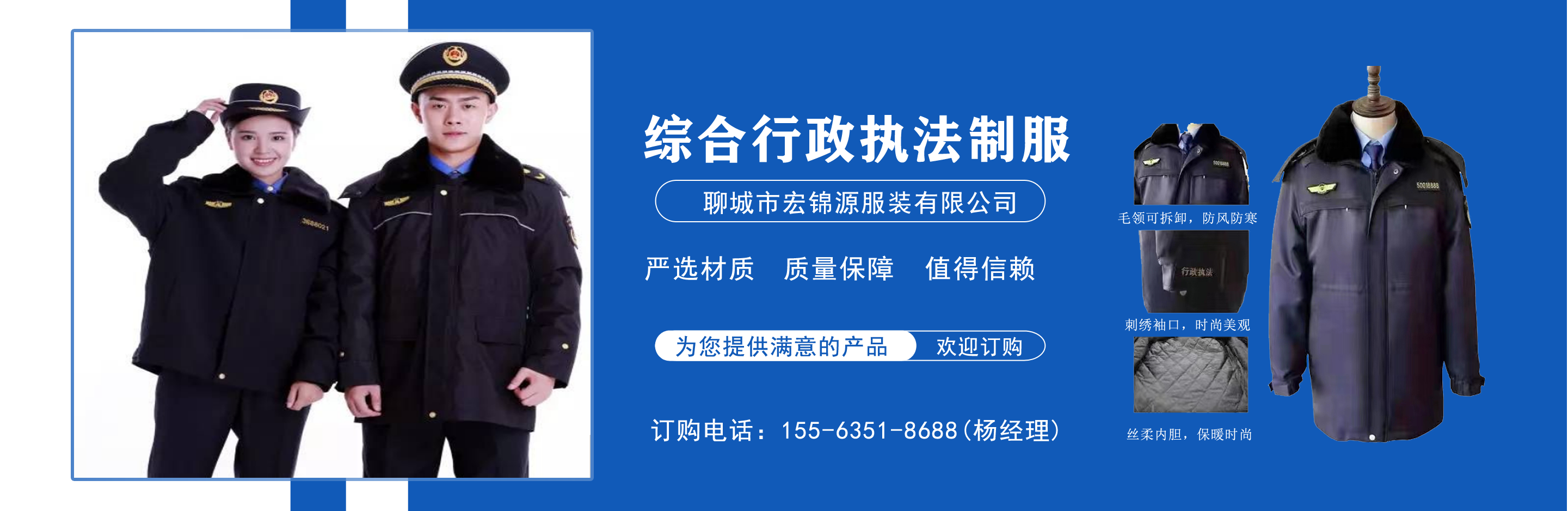 聊城市宏錦源服裝有限公司位于江北水城—山東聊城,地理位置優(yōu)越,交通便利。公司主營綜合行政執(zhí)法制服,交通執(zhí)法服裝,應(yīng)急管理執(zhí)法標(biāo)志服,市場監(jiān)督管理標(biāo)志服,農(nóng)業(yè)執(zhí)法服裝,生態(tài)環(huán)境保護制服,文化市場執(zhí)法服,城管標(biāo)志服裝廠,衛(wèi)生監(jiān)督制服,六部門標(biāo)志服廠家等,值得信賴! 公司生產(chǎn)的標(biāo)志服裝據(jù)有造型美、板型新、多次水洗不退色、不變型、不起泡。 “認(rèn)真辦事,踏實做人”是宏錦源的企業(yè)精神,我們的宗旨是:“用服務(wù)與真誠來換取你的信任與支持,互惠互利,共創(chuàng)雙贏!”我公司愿與國內(nèi)外各界同仁志士竭誠合作,共創(chuàng)未來企業(yè)目標(biāo):在已選定的服飾領(lǐng)域中,成為行業(yè)的卓越者。 經(jīng)營理念:追求產(chǎn)品卓越,為用戶提供完美、高效的服務(wù)。...